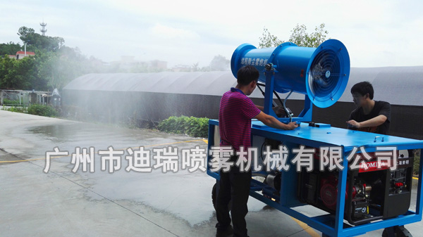 移動(dòng)式噴霧風(fēng)炮,移動(dòng)方便,高空噴射,操作簡(jiǎn)單,整機(jī)結(jié)構(gòu)緊湊合理,自帶水箱和輪胎,移動(dòng)方便。還可選裝內(nèi)置柴油發(fā)電機(jī)組,汽油發(fā)電機(jī)組等,實(shí)現(xiàn)隨時(shí)移動(dòng)作業(yè)。迪瑞噴霧風(fēng)炮原理是利用高壓方式將水霧化,通過風(fēng)送裝置擴(kuò)散到需要揚(yáng)塵控制的區(qū)域,使水霧與粉塵顆粒充分接觸、碰撞、結(jié)合變成大顆粒團(tuán)聚從而自然沉降,達(dá)到去除揚(yáng)塵、潔凈空氣稀釋有害氣體、降溫等多重功效。噴霧風(fēng)炮比傳統(tǒng)的灑水噴淋降塵效果更好,單機(jī)噴霧量大、送風(fēng)距離遠(yuǎn),霧滴粒徑和水量可靈活調(diào)節(jié),可固定使用也可移動(dòng)使用,機(jī)動(dòng)靈活。 特別適用于大面積粉塵環(huán)境、彌散性揚(yáng)塵的壓制。
