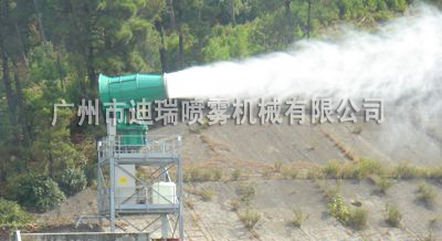 高塔式噴霧風(fēng)炮一般安裝在混凝土澆筑、鋼架結(jié)構(gòu)搭建的平臺上,依靠噴霧風(fēng)炮射程遠,水平旋轉(zhuǎn)角度大進行大面積噴霧除塵。