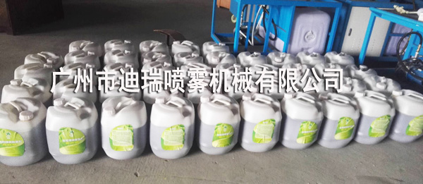 植物除臭劑經過自動配比器按一定比例稀釋后,經噴霧控制設備和高壓管路系統(tǒng)輸送至布設在臭氣控制區(qū)域現場的噴嘴,并被霧化成10~40微米粒徑的細霧均勻分散至控制區(qū)域現場空間,植物除臭劑的細霧和空氣中的臭氣分子接觸后,通過吸收、親核加成、催化氧化、化合等一系列反應,達到除臭氣的目的。